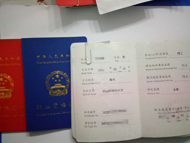 焊工中级职业资格证书 焊工高级职业资格证书 焊工技师职业资格证书