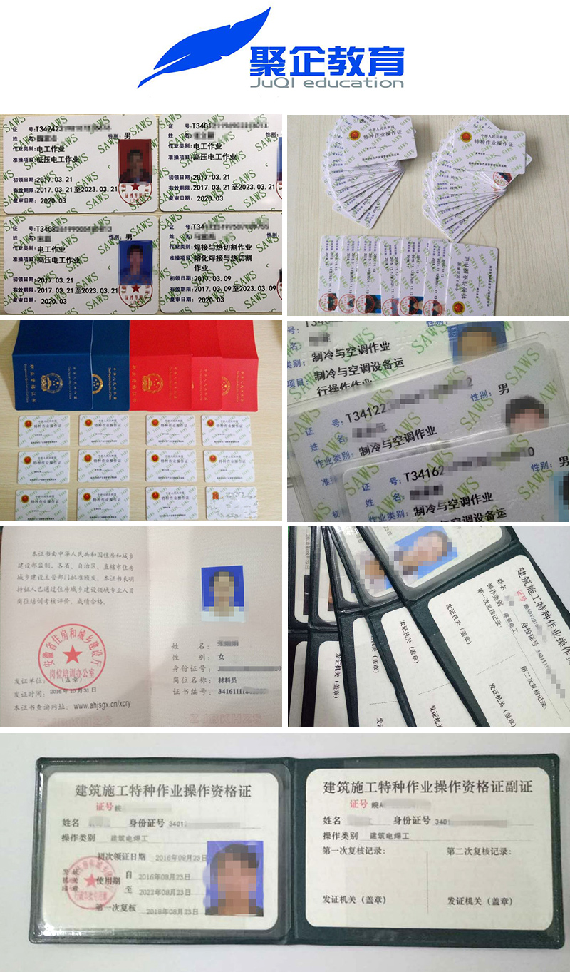 特种作业人员证:高压电工、低压电工、焊工(溶化焊接与热切割作业)、登高作业、登高安拆,制冷与空调作业、危化品作业、企业安全员、企业负责人培训考证等。每月一期。
