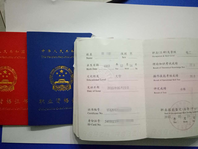 人社部门:电工 焊工 管道工 制冷工 计算机操作工等中级、高级、证书