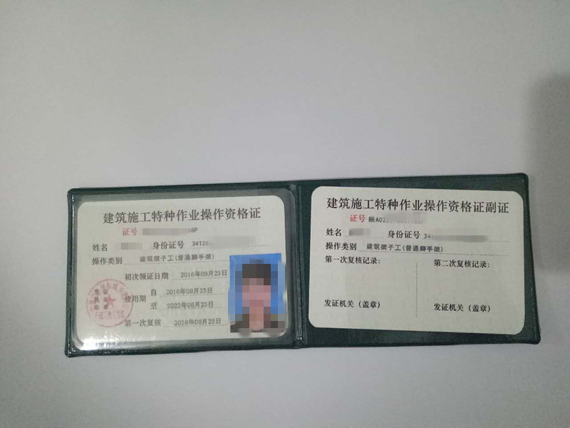 安徽省住建厅颁发的建设领域专业人员证书(全国通用,网上可查)--特种作业操作资格证书