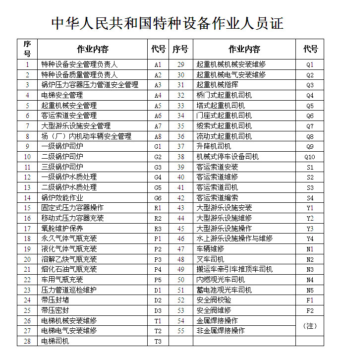 ⑷电梯(安装维修、电梯司机等T系列);
